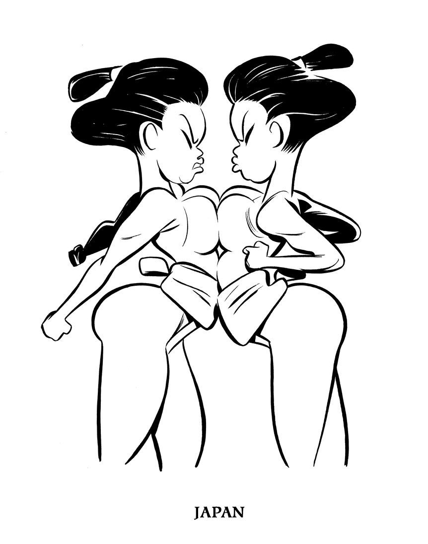 Here's the first batch of inks for my and Josh Cooley's "54 Intercontinental Cuties" playing card deck. Josh and I decided to do line art with digital color to keep them consistent with each other. Since our styles vary already, painting them traditionally would make consistency that much harder.
